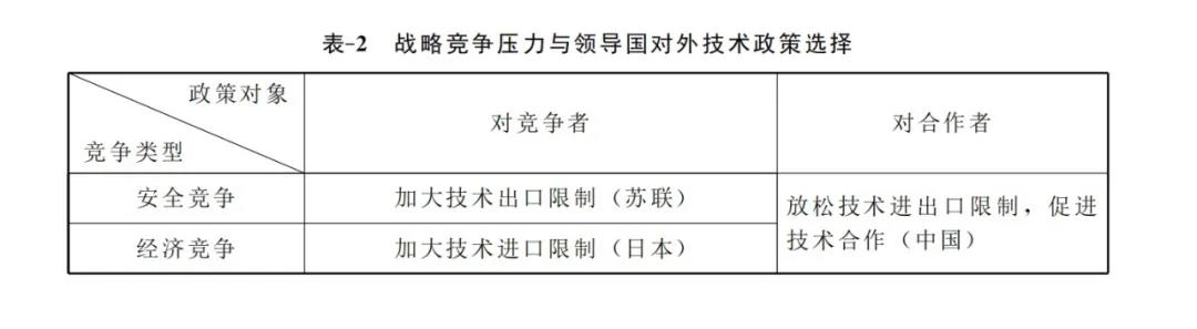 (三)领导国调整技术政策的背景是面临直接、迫切的战略竞争压力。已有研究向我们展示,外部压力往往有助于内部团结。当一个群体面临战争、自然灾害等压力时,即便是“自利”的个体也愿意合作以应对压力。米尔斯海默指出,大国有时愿意帮助重要盟友获得经济优势,因为它可以通过这样做来威慑或者打击一个更强大的竞争对手。换言之,为了维护世界领导权,世界政治中的领导国需要寻找合作伙伴来应对紧迫的、直接的压力与威胁。在此背景下,我们才能理解为何领导国要找寻其他大国合作,为何领导国同意向未来的竞争者转让技术。领导国需要争取合作者来应对战略竞争压力,这既包括安全竞争,也包括经济竞争。